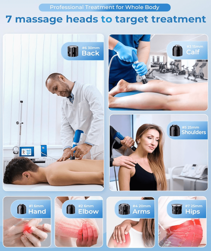 SHOCK VITALIZE shockwave therapy machine uses high-frequency shockwave energy to stimulate tissue repair, improve circulation, and relieve pain. The device penetrates up to 2.76 inches, offering deep relief for muscles and joints, making it ideal for physical therapy and sports medicine. Session times range between 8-15mins.